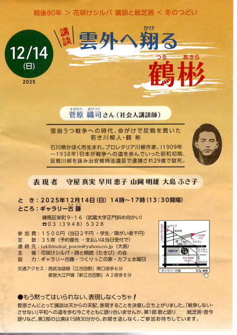 2025/12/14 講談:「雲外へ翔る鶴彬」(菅原織司)ギャラリー古藤
