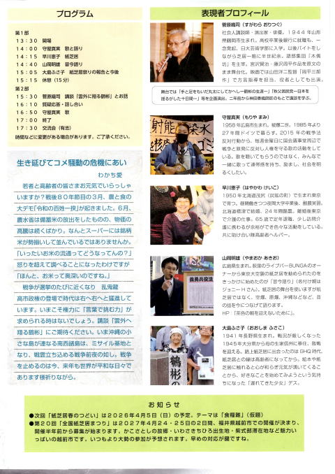 第1部は歌と語り(守屋真実)・紙芝居(早川恵子)・昔今語り(山岡明雄)ほか。